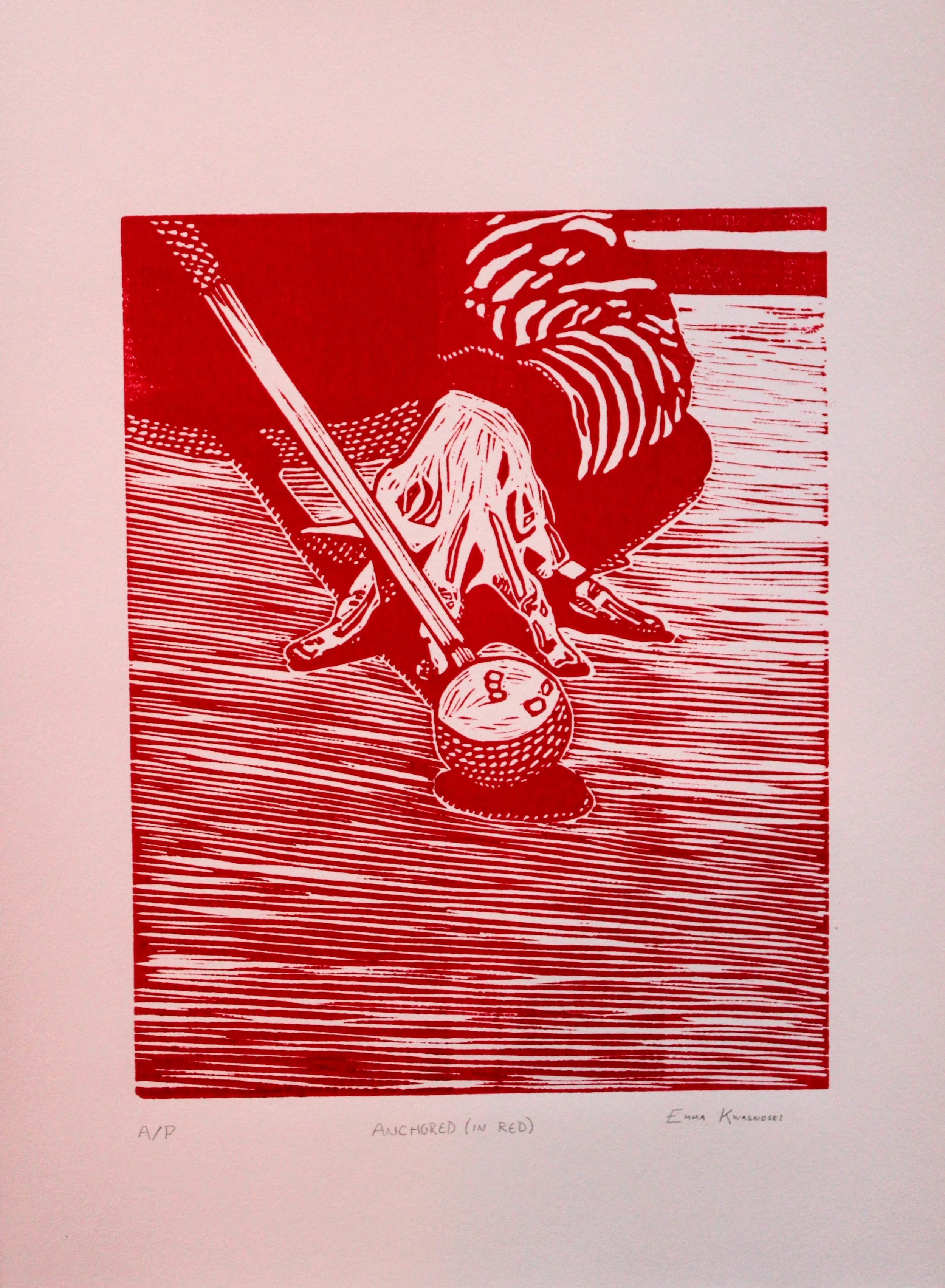 Linocut Print, 8x10 print on 11x15 paper, June 2025