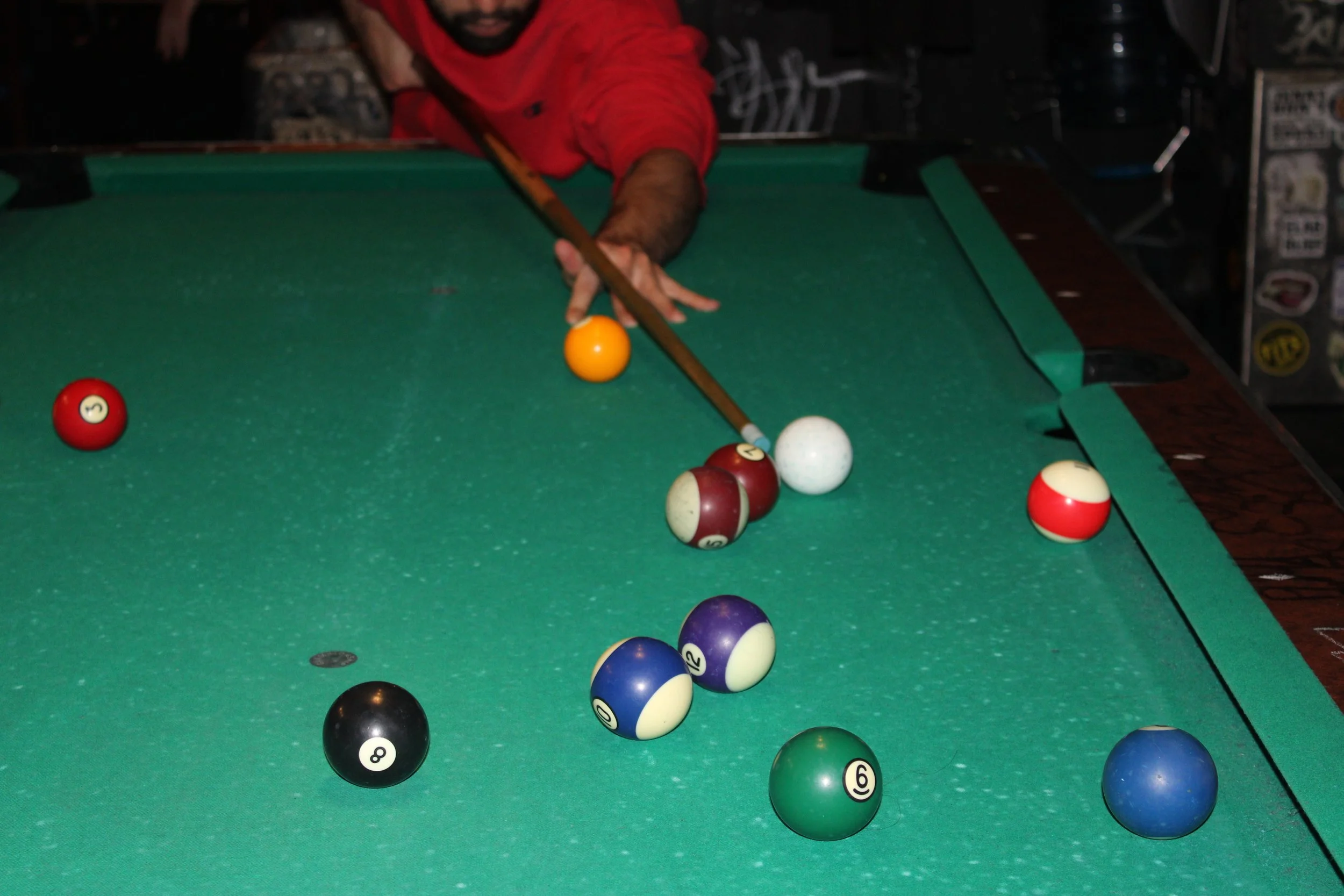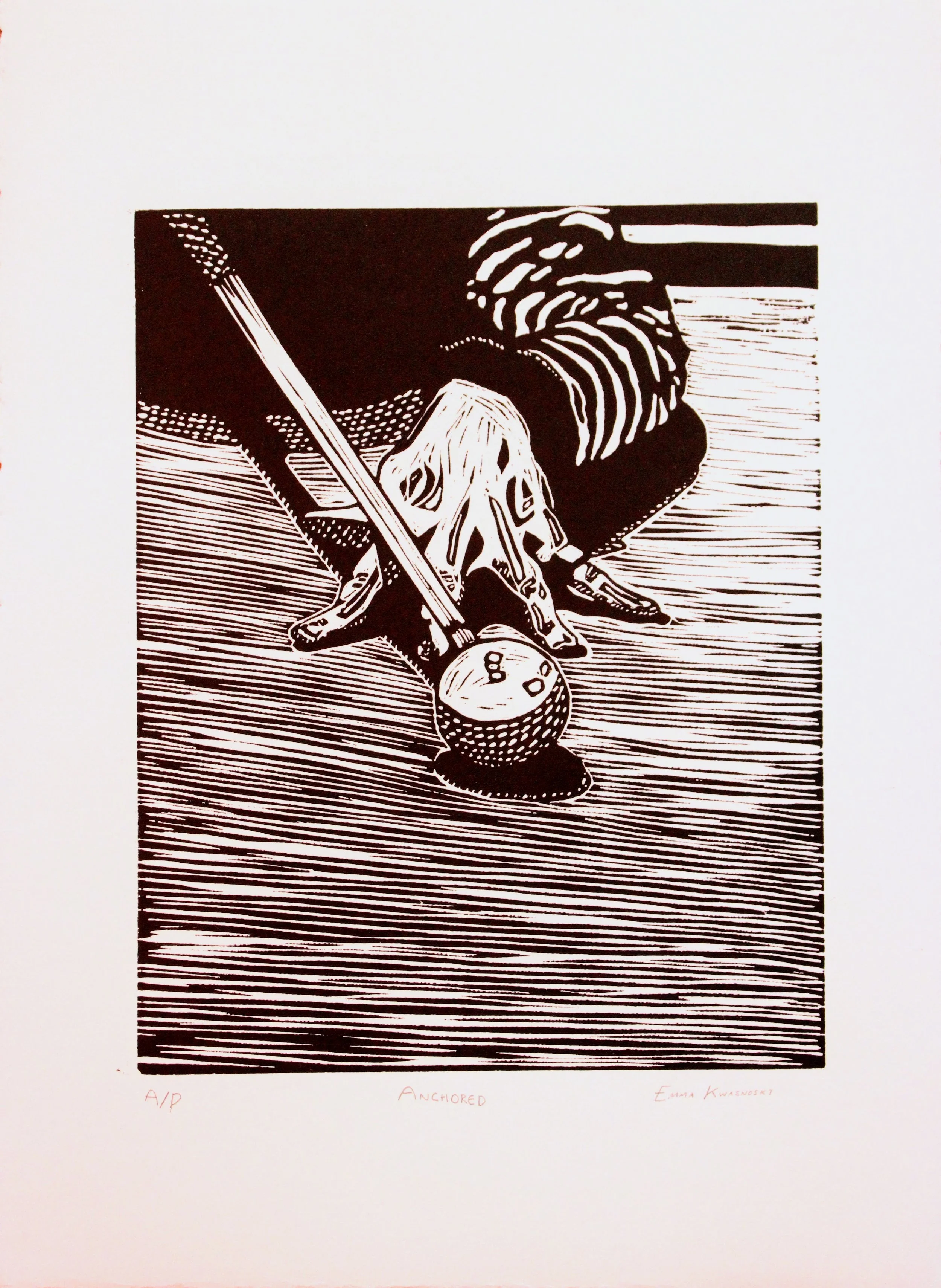 This print is based on my time playing pool at Brooklyn dive bars. “Anchored” references the bar, as well as the technique of applying weight to anchor your bridge hand and enable a steady, accurate shot with the cue.